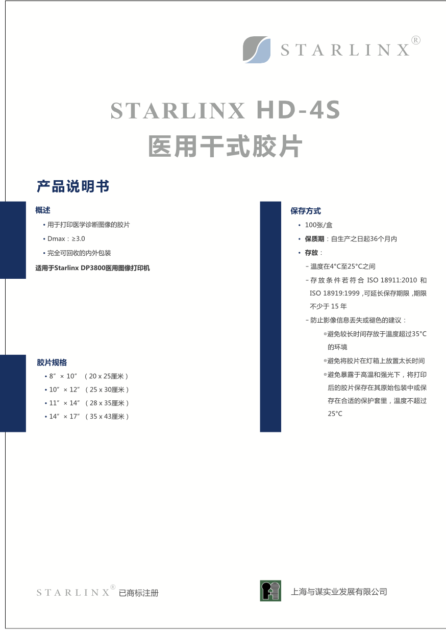 医用干式胶片产品说明书