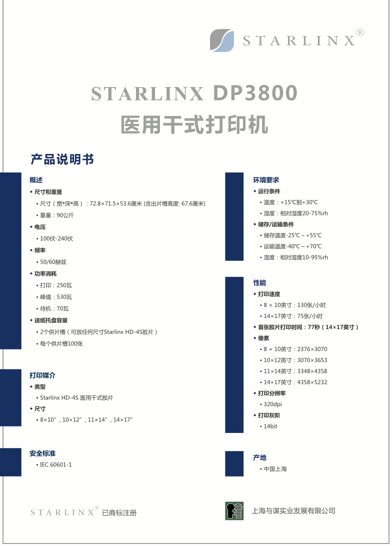 可打印胶片规格:14”´17”,11” ´ 14”,10” ´ 12”,8” ´ 10”